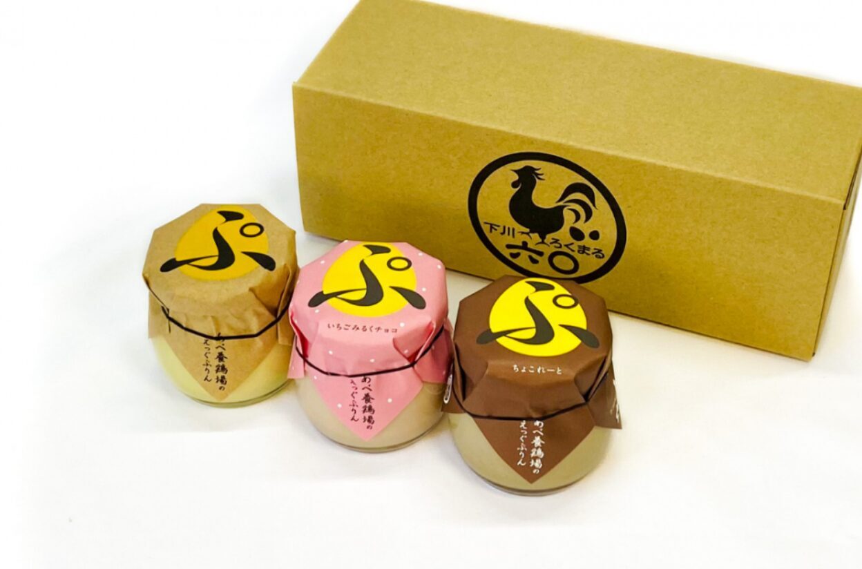 あべ養鶏場のえっぐぷりんは、下川六〇酵素卵をたっぷり使い、原材料はすべて道内産にこだわり、北海道をギュッと閉じ込めた自信の一品です。安心・安全を第一に考え、ひとつひとつ手作業で大事に作っています。
