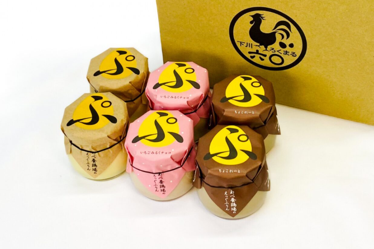 あべ養鶏場のえっぐぷりんは、下川六〇酵素卵をたっぷり使い、原材料はすべて道内産にこだわり、北海道をギュッと閉じ込めた自信の一品です。安心・安全を第一に考え、ひとつひとつ手作業で大事に作っています。